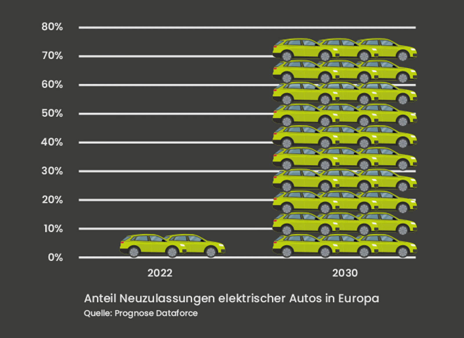 Alle Experten prognostizieren für die nächsten Jahre einen raschen Anstieg von rein elektrischen Fahrzeugen in Europa. Die Entscheidung der EU, ab 2035 keine Verbrenner mehr zuzulassen, wird diese Entwicklung noch massiv beschleunigen.