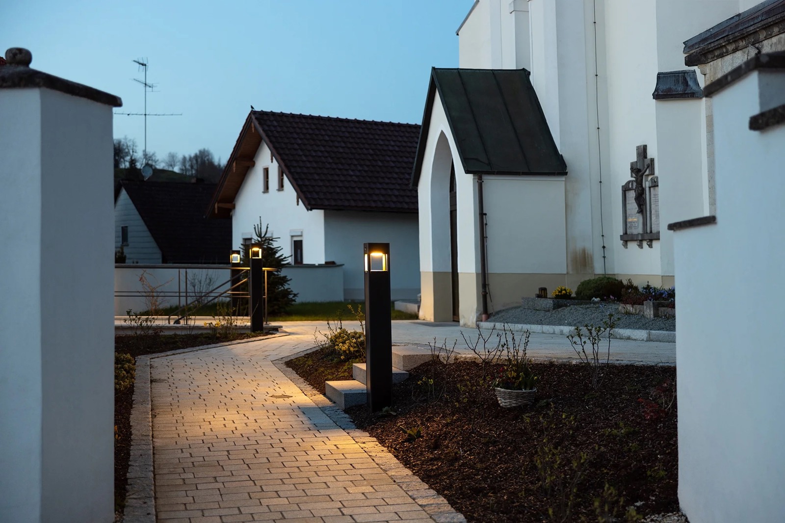 Die PREVIA ist eine elegante, solarbetriebene Pollerleuchte für Gehwege, Parks, Einfahrten und öffentliche Plätze – ideal für Standorte ohne Stromanschluss. Ihr vertikales Solarmodul-Design verhindert Schnee- und Laubablagerung und sorgt für zuverlässige Energiegewinnung auch bei diffusem Licht.