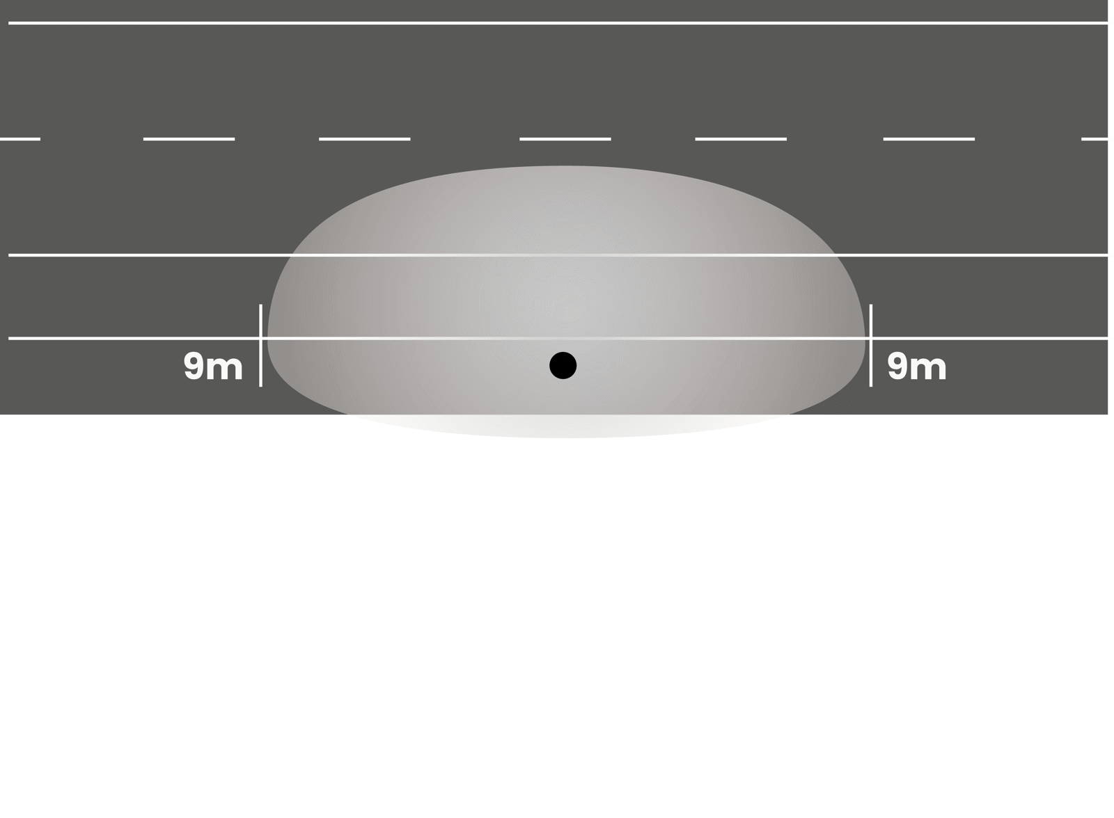 Der Erfassungsbereich des lix.pure SLC-C Radarsensors ist speziell für die Bewegungserkennung unterhalb der Leuchte konzipiert. Die Erkennung erfolgt elliptisch, das heißt, der Sensor erfasst Bewegungen in einem ovalen Bereich direkt unterhalb und rund um die Leuchte – ideal für Rad- und Fußwege, Parkplätze oder verkehrsberuhigte Zonen. Die empfohlene Lichtpunkthöhe liegt zwischen 4 und 8 Metern, wobei der Sensor bei dieser Montagehöhe zuverlässig Personen, Fahrräder und Fahrzeuge im Geschwindigkeitsbereich von 1 bis 65 km/h erkennt. Die Erfassungsfläche ist so gestaltet, dass sie Bewegungen in typischen Geh- und Fahrbereichen abdeckt, ohne unnötige Auslösung durch entfernte oder irrelevante Objekte. Durch die radarbasierte Technologie ist der Sensor unempfindlich gegenüber Witterungseinflüssen wie Regen, Schnee oder Nebel und funktioniert zuverlässig bei Temperaturen von –30 °C bis +85 °C.